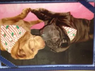 Kobe is a 5 year old Sharpei and Phoebe is an 8 year old Sharpei